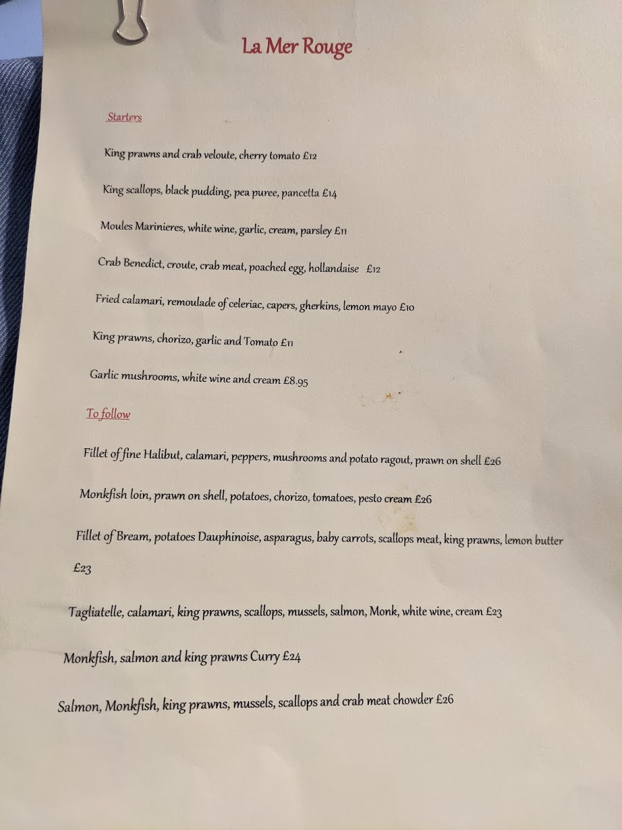 La Mer Rouge, The Red Sea Menu